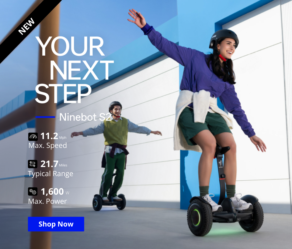 The Ninebot S2 offers the perfect self-balancing scooter experience for riders seeking both style and comfort. Whether teen or adult, users can easily adjust the knee control bar height to achieve a personalized fit. The RGB wheel lights and taillights can also be personalized to reflect individual mood and personality. With a built-in Bluetooth speaker, riders can sync their devices to pair the perfect playlist with a smooth ride.