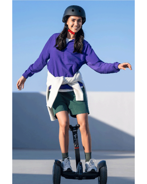 The Ninebot S2 offers the perfect self-balancing scooter experience for riders seeking both style and comfort. Whether teen or adult, users can easily adjust the knee control bar height to achieve a personalized fit. The RGB wheel lights and taillights can also be personalized to reflect individual mood and personality. With a built-in Bluetooth speaker, riders can sync their devices to pair the perfect playlist with a smooth ride.