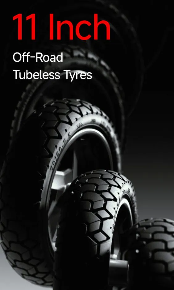 Specially crafted 11-inch off-road tires with tubeless interior, providing excellent support and 10% increased grip, making every landing comfortable and with confidence.